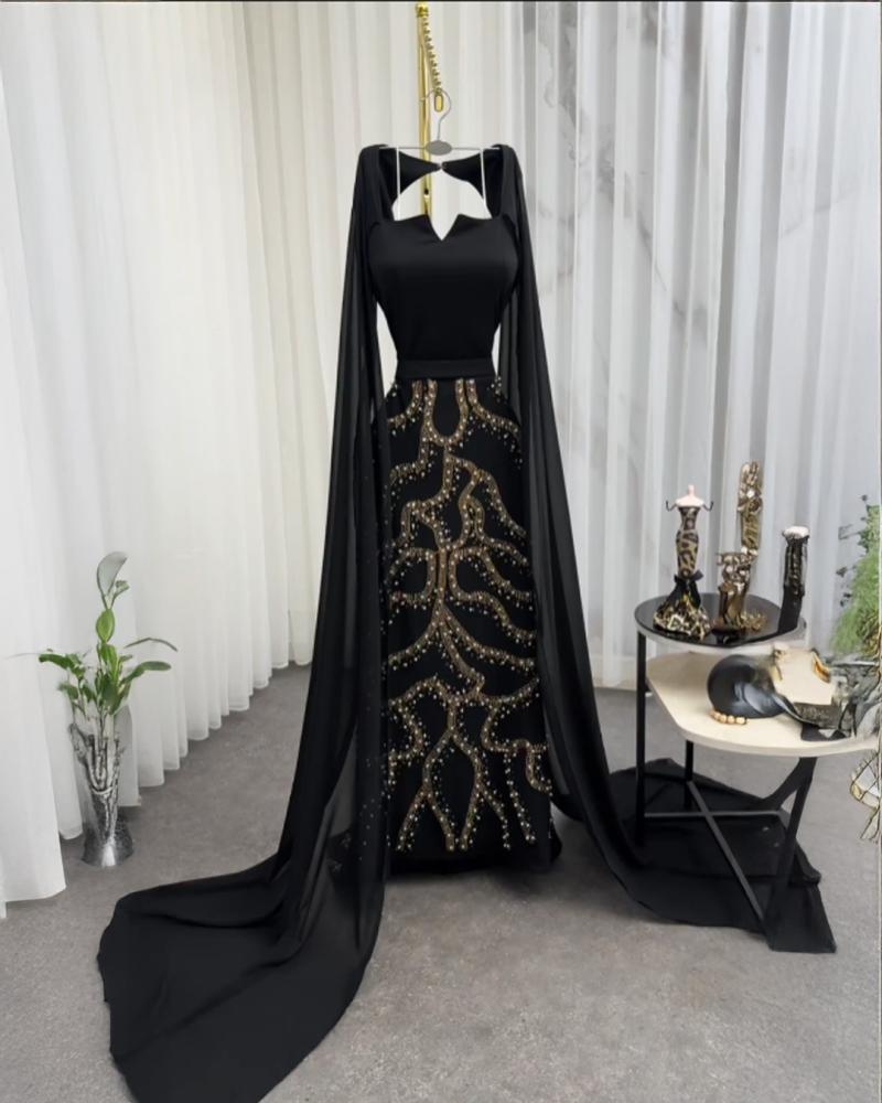 التفاصيل: تطريز فاخر مرصّع بالأحجار، كاب طويل من الكتف