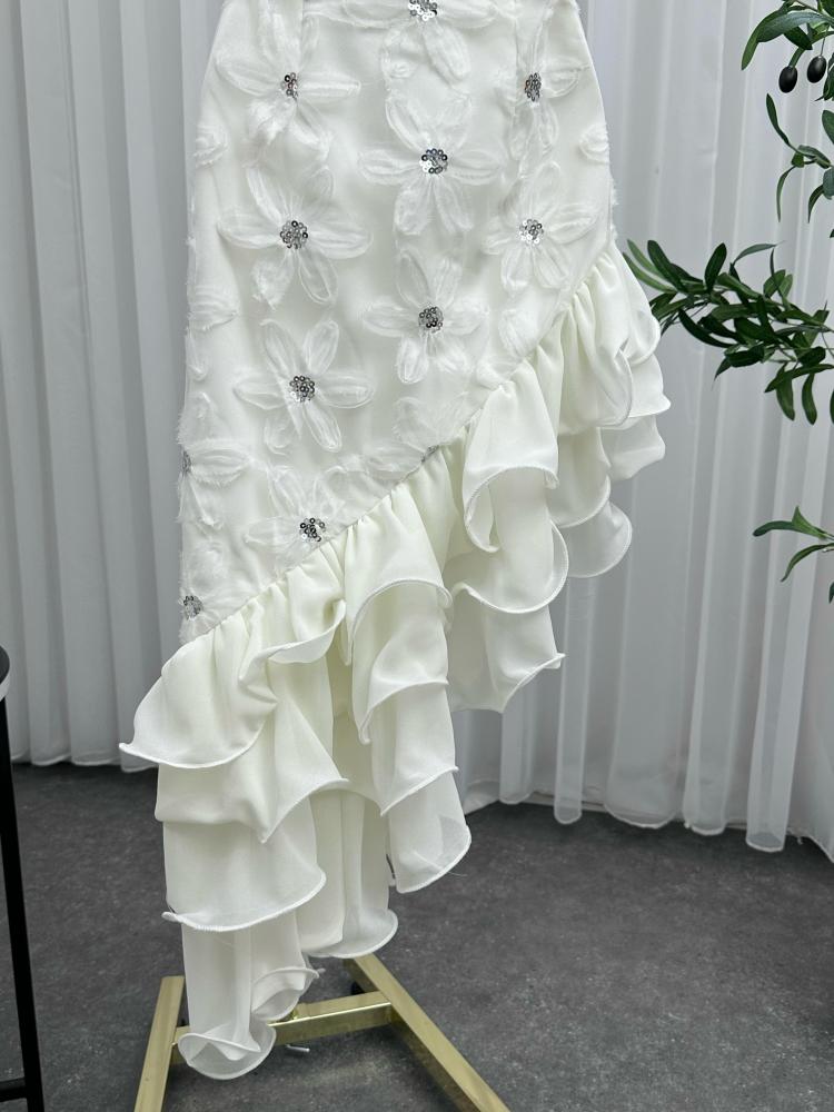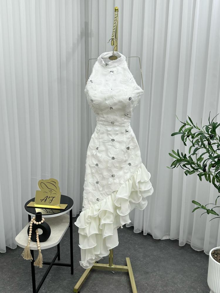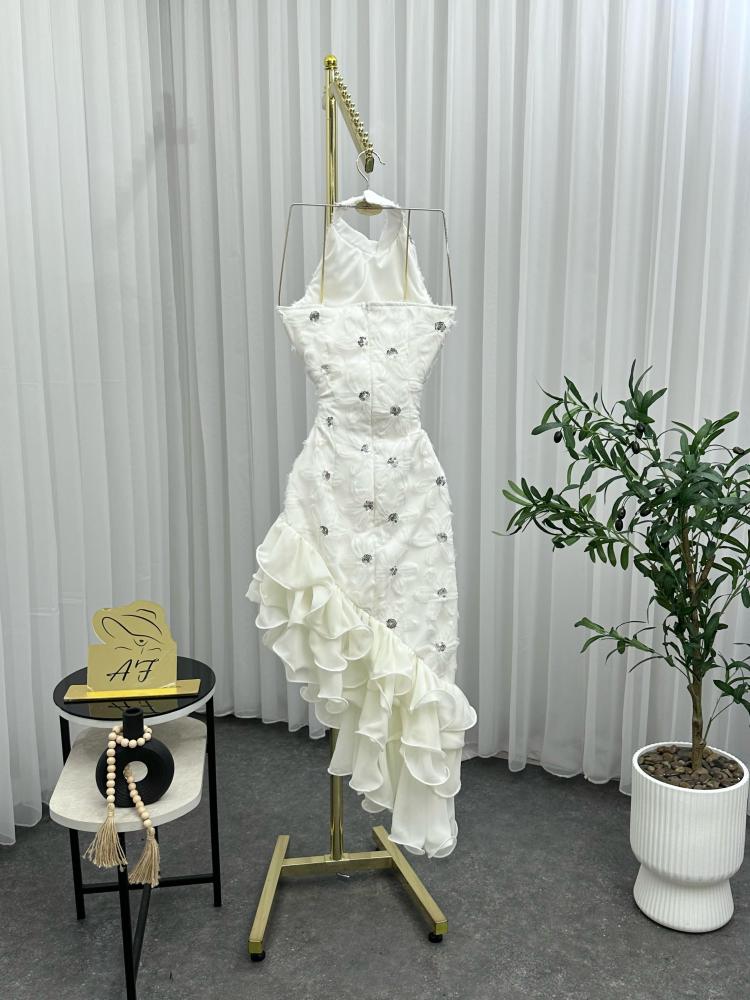 لو كنتِ تدورين على فستان أبيض قصير طويل بنعومة التفاصيل وجودة الخامة، هذا هو خيارك المثالي.