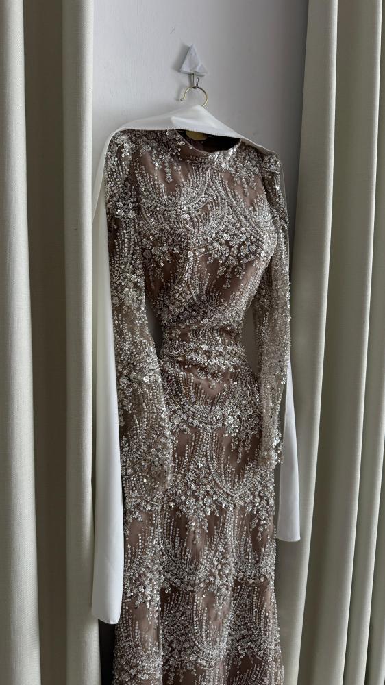 فستان إيزارا مصمم من خامة فاخرة مطرّزة يدويًا بالخرز اللامع،