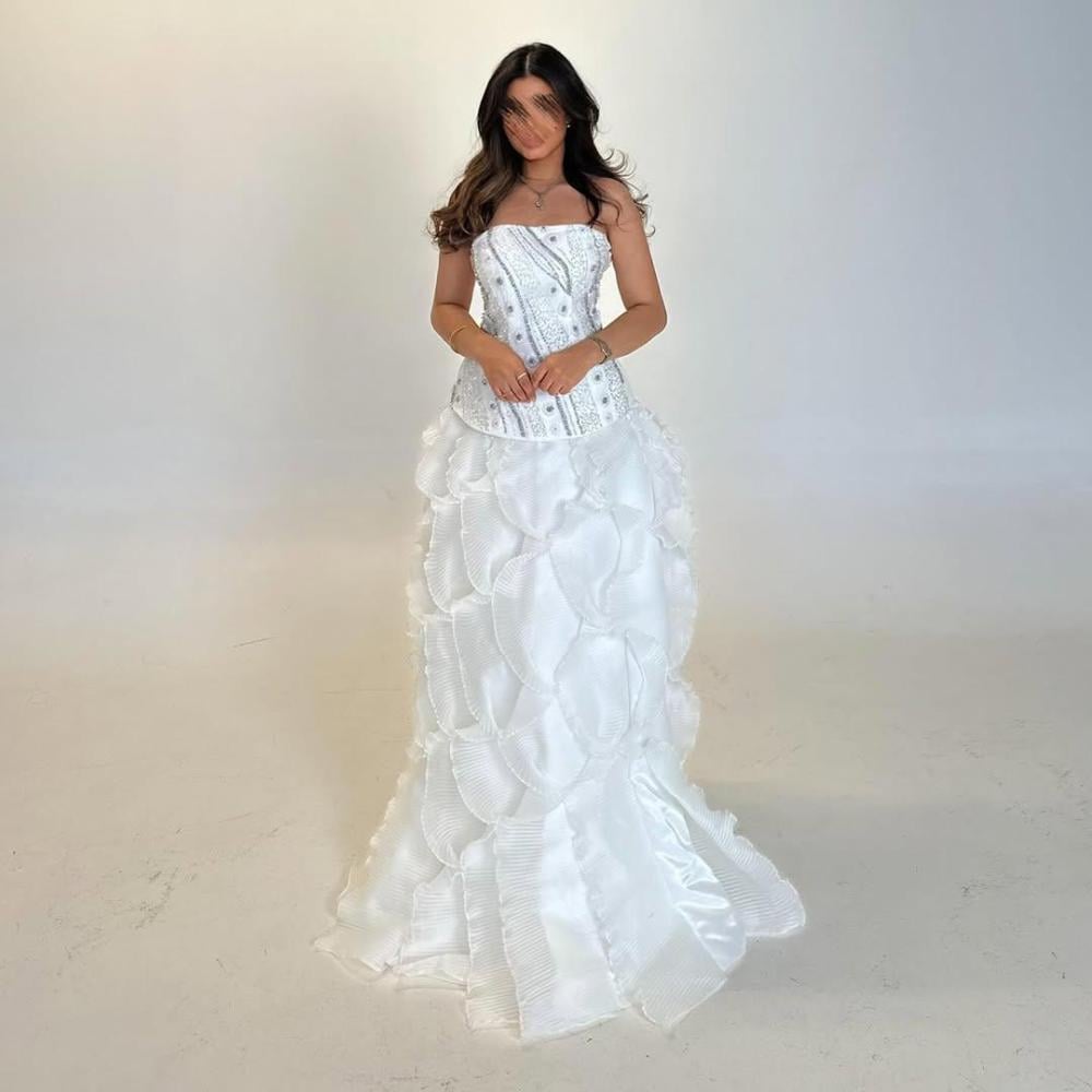القماش: تل فخم + شيفون مطرز + كورسيه مدعم