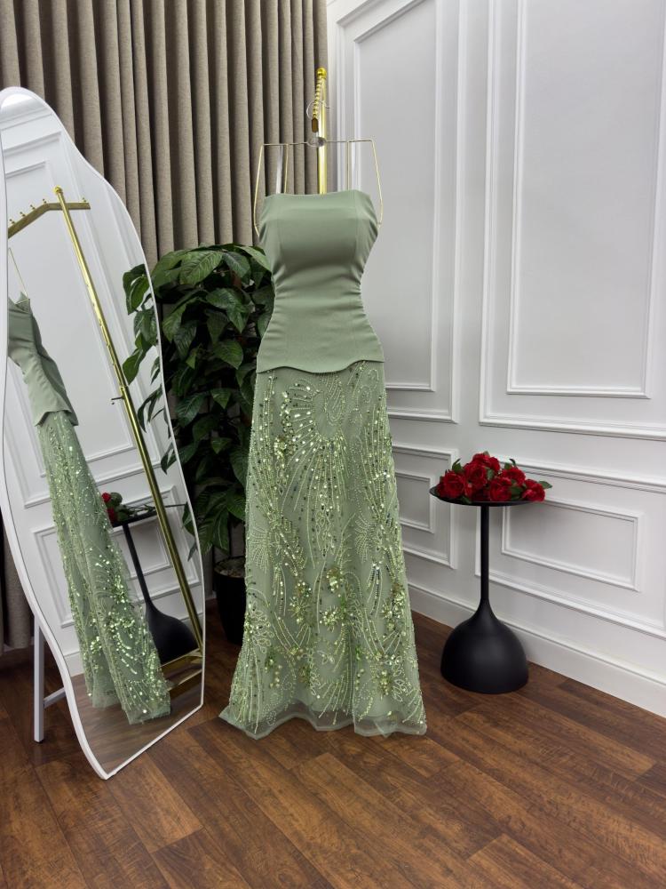 خلي إطلالتك دايمًا في الصدارة مع فستان سهرة أخضر سترابلس وتطريزات دانتيل أنثوية، لأن مع إيلفندي كل مناسبة تصير عنك. ✨