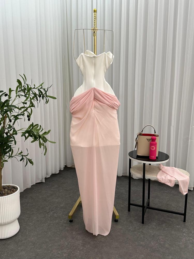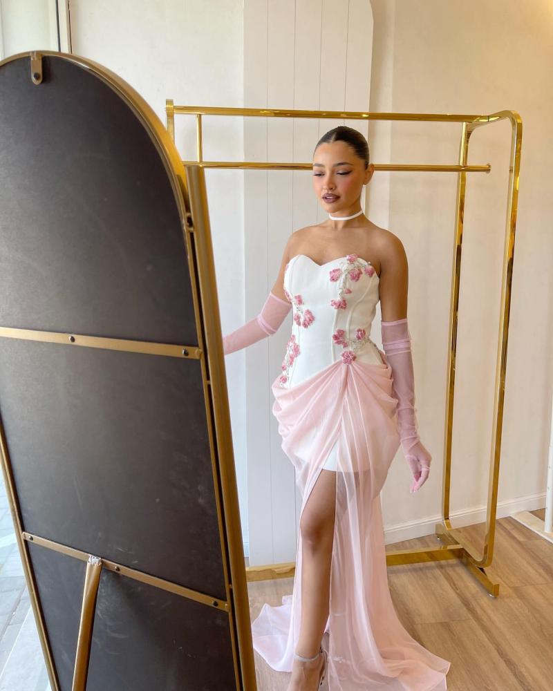 فستان باربي بلون سكري أنثوي، يدمج بين بساطة القَصّة وثراء التفاصيل.