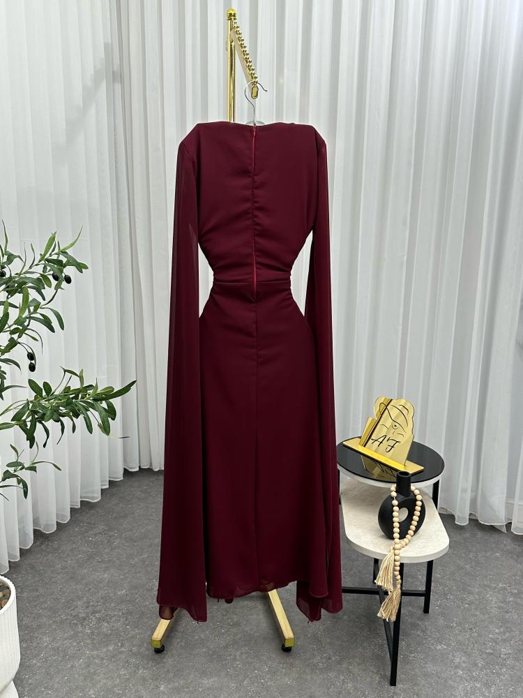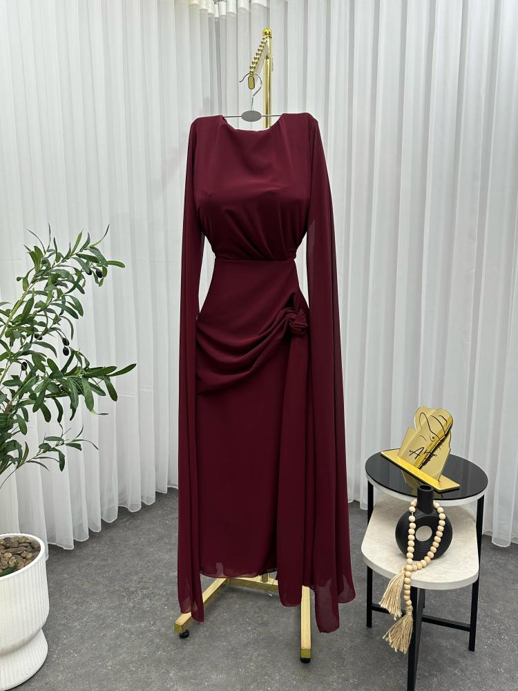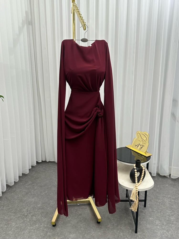 ✨ إطلالتك إيلفندي تبدأ مع ديانا Diana، الفستان البرغندي المصنوع من جورجيت الفاخر والمبطن بتفته ناعمة، عشان يعطيك إحساس بالراحة والرقي في كل مناسبة.