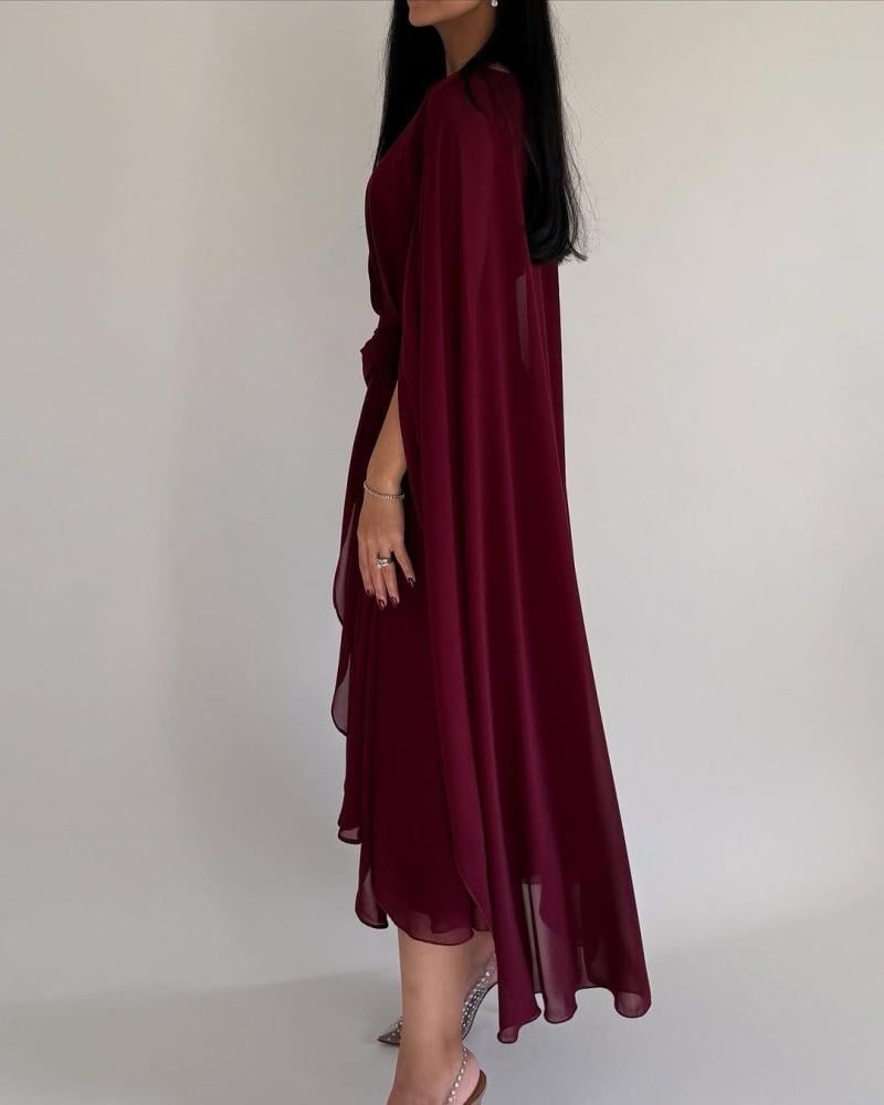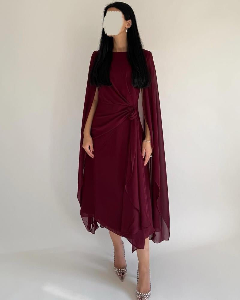 اختاري ديانا Diana لو حابة فستان برغندي ميدي من جورجيت مبطن بتفته وكاب طويل، وخلي إطلالتك إيلفندي تحكي عن ذوقك في كل مناسبة.