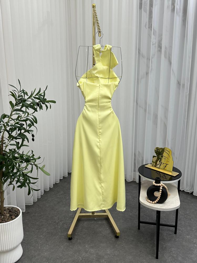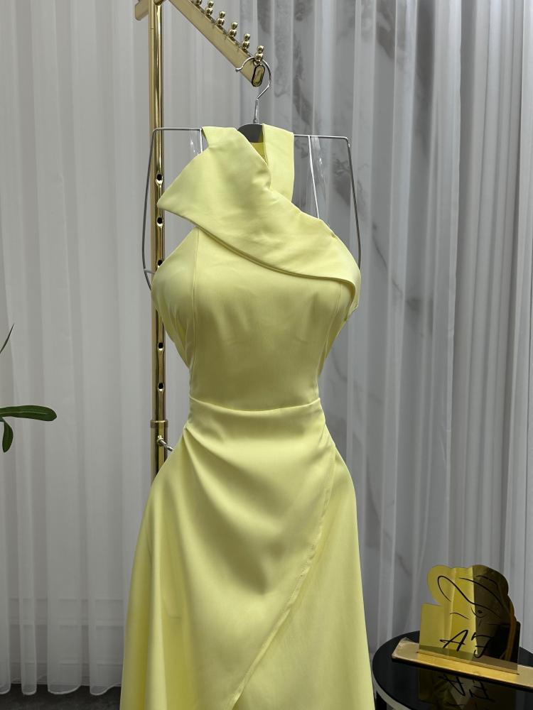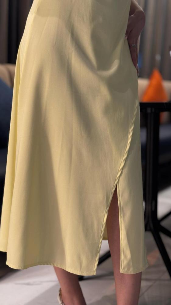 لون أصفر ناعم، قصّة نظيفة، وتفصيل ذكي يبرز جمالك بدون تصنّع.