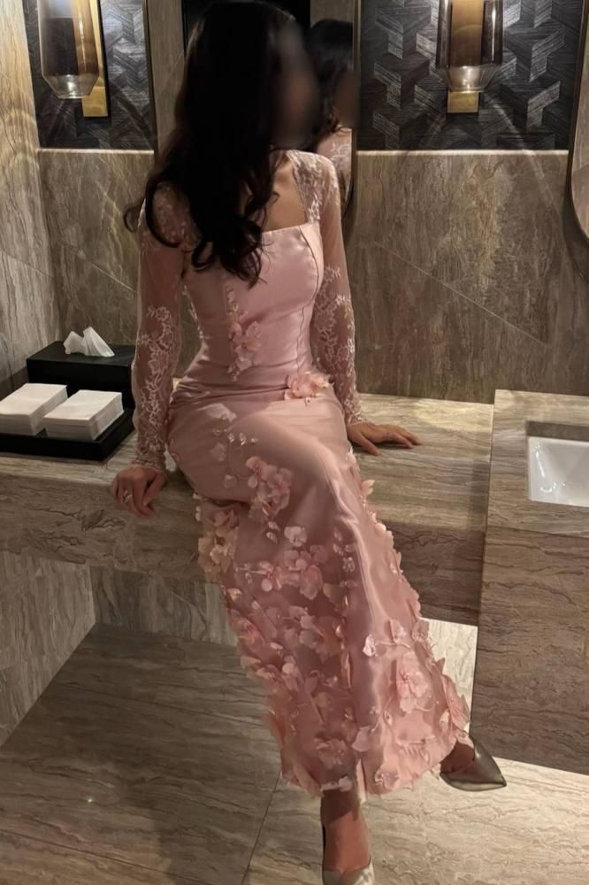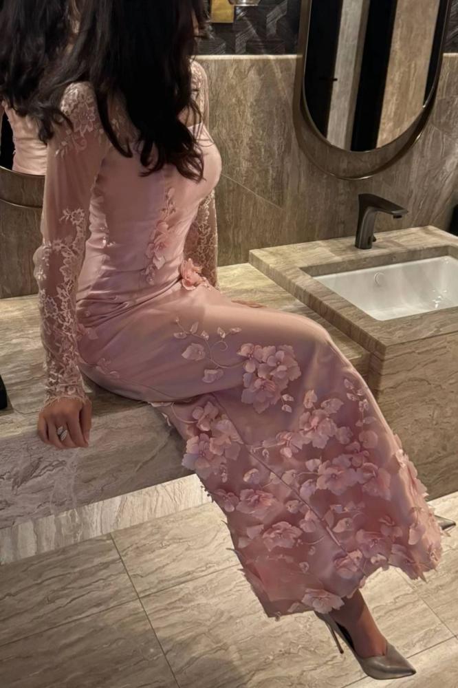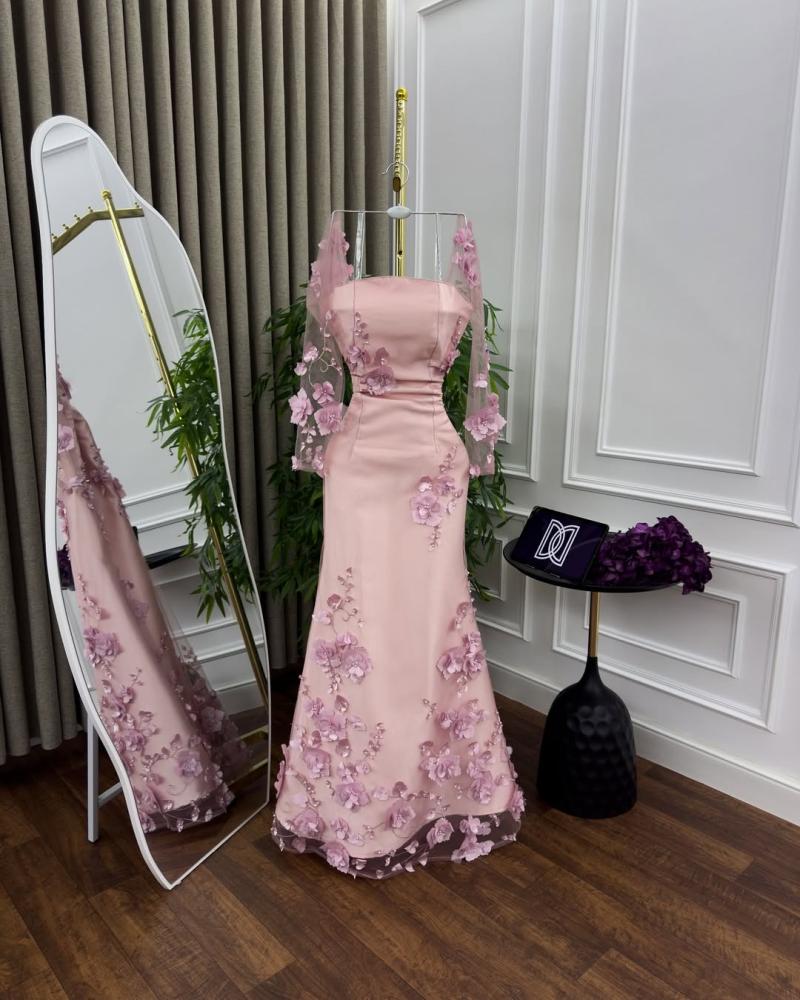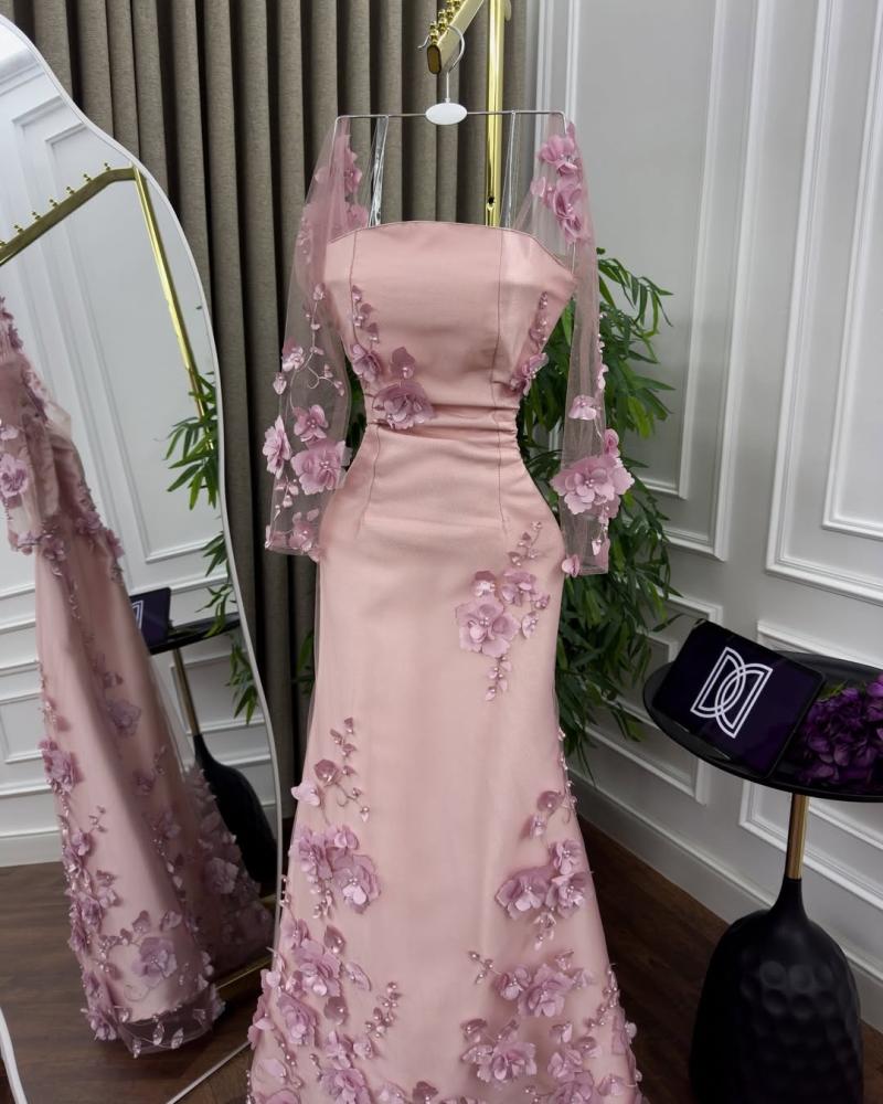 اختاري Melany لو حابة فستان وردي طويل دانتيل مطرز بأكمام شفافة، وخلي إطلالتك إيلفندي تكمل حكاية أنوثتك في كل مناسبة.