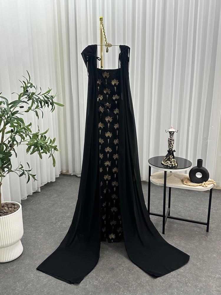أسود ملكي بتطريز ذهبي (Midnight Black with Golden Thread)