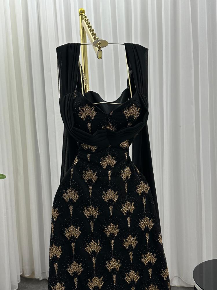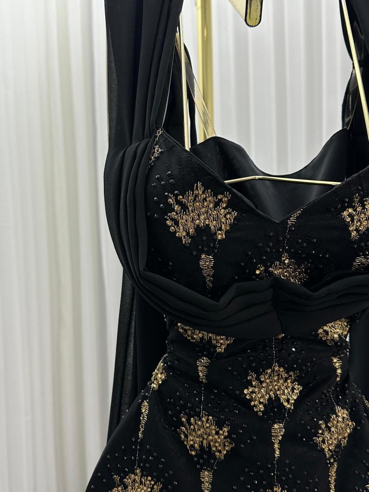 - تطريز ذهبي على قماش جورجيت بخفة تلمع مع الإضاءة