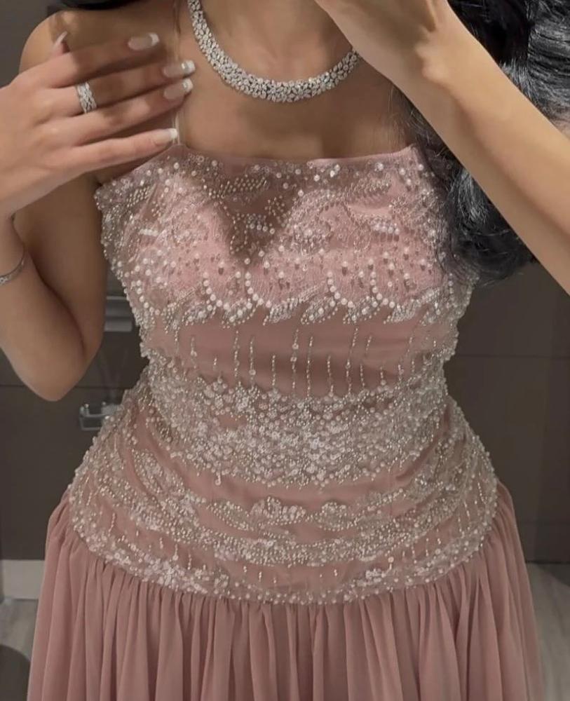 درونا فستان بنعومة البنت اللي ما تحب تتصنّع، وبفخامة تكفي عشان الكل يلتفت لها. تصميم يوازن بين الرقة والتميّز، ويحتضن تفاصيلك بدون ما يغطي حضورك.