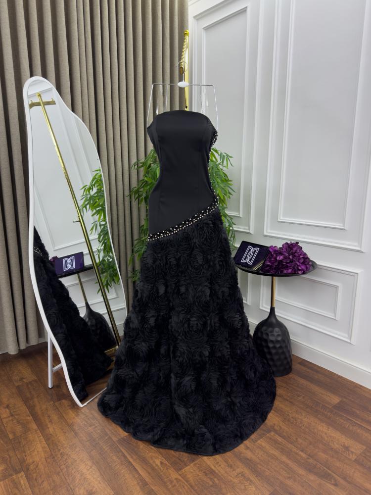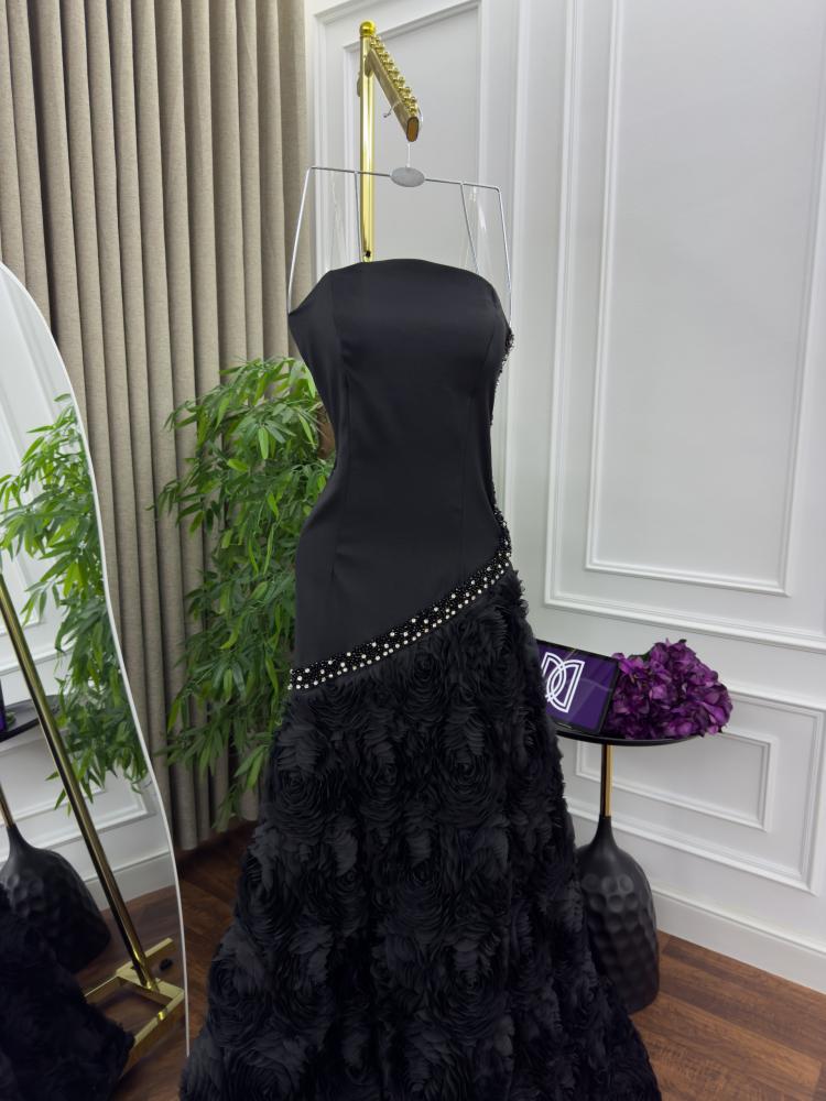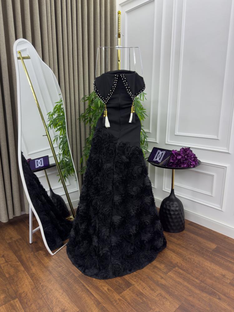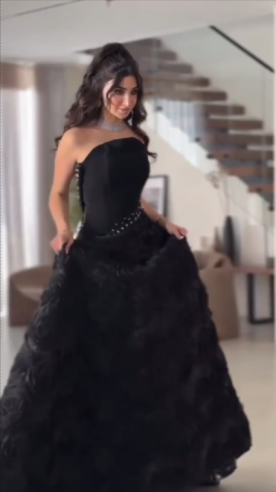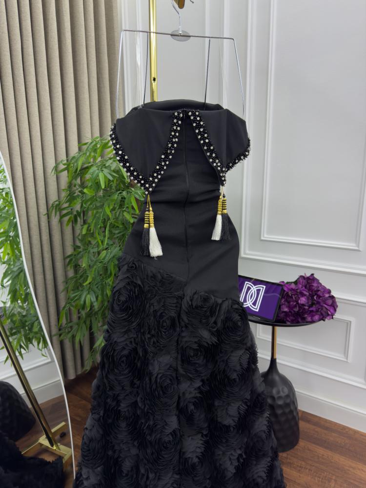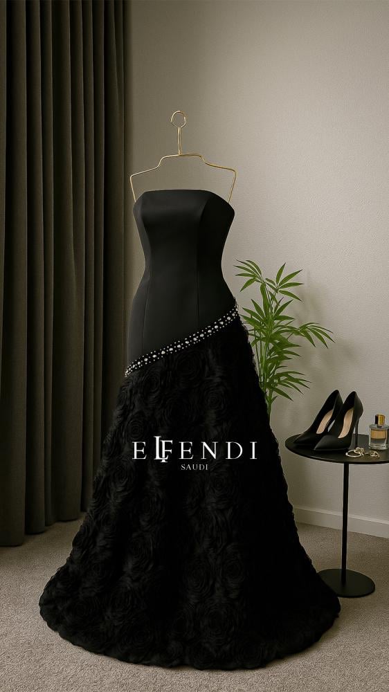 ✨ إطلالتك إيلفندي تبدأ مع فستان سهرة نوارا إيليت، فستان أسود ملكي يليق بكل بنت تدور الأناقة الحقيقية. التصميم بدون أكتاف وقصة ضيقة من الأعلى تنحت الجسم وتبرز تفاصيلك بثقة، أما التنورة فهي قطعة فنية بروشات وردية سوداء فخمة تضيف إحساس ناعم وفاخر في كل حركة 👑🖤. حزام مطرّز بحبيبات براقة يفصل بين القماش الساتان الناعم وقماش الورود ثلاثية الأبعاد، ليعطي الفستان لمسة كلاسيكية مع لمعة هادية تلفت الأنظار.